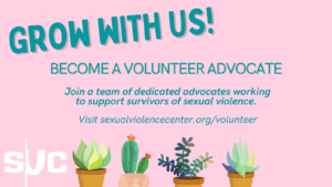 Join us at the Sexual Violence Center as a volunteer advocate. Our 40-hour advocacy training is packed with must-have skills…