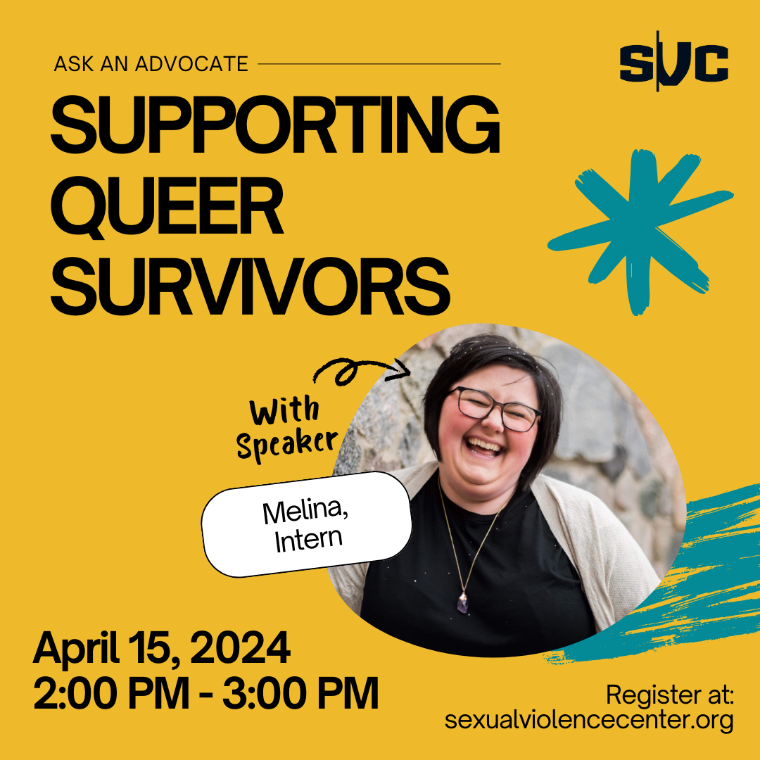 This session will be hosted by Melina, Intern at the Sexual Violence Center.